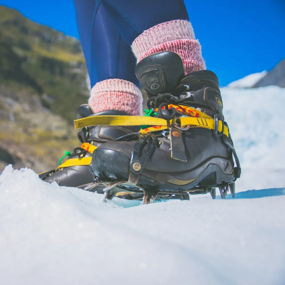Grampones ligeros y resistentes para terrenos helados o de alta montaña. Ofrecen máxima tracción y seguridad en tus salidas invernales.